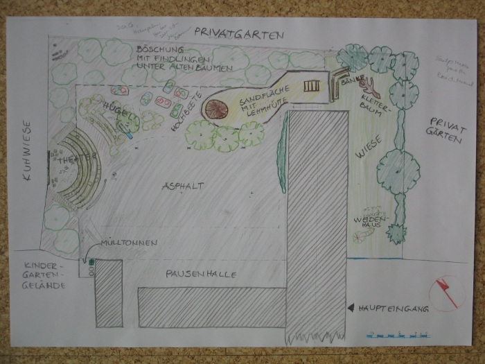 • Einbeziehung des Schulhofrandbereiches, bestehend aus Bäumen und Sträuchern, der bisher für die Kinder gesperrt war