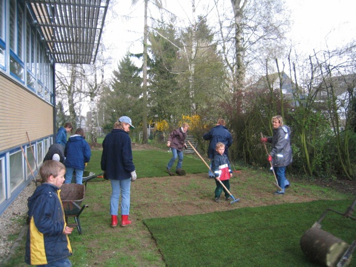 • Zusammenwirken der Eltern, Lehrerinnen und Kinder in den Maßnahmen zur Umgestaltung des Schulgeländes (Gemeinschaftsprojekt)